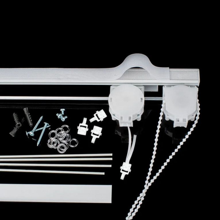 Основой карниза служит профиль «Велкро», снабжённый лентой-липучкой для быстрого и надёжного крепления шторной ткани. Благодаря использованию универсального пластикового кронштейна доступны любые варианты монтажа: к потолку, к стене, к стеновому кронштейну. Карниз имеет цепочный механизм управления: пластиковая цепь движется через привод вращения, передающий усилие на Х-образный поворотный стержень, который запускает ход кареток. Каретки обеспечивают вертикальное движение шторного полотна посредством лент, прикреплённых к его оборотной стороне.