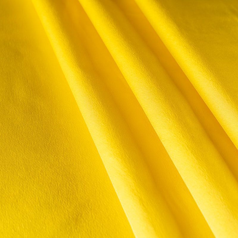 Итальянский костюмно-плательный атлас ватуссо яркого лимонного оттенка. Ткань плотная, но пластичная, хорошо держит форму и отлично тянется, собирается в красивые складки и драпировки. Почти не мнется, очень удобный и практичный. Блеск умеренный, смотрится дорого, благородно. Подойдет для пошива прямых силуэтов-футляров, приталенных платьев с пышной юбкой и крупными драпировками, изделий с заложенными складками, нарядных изделий, вечерних костюмов, летнего пальто, юбки, для изготовления корсетов.