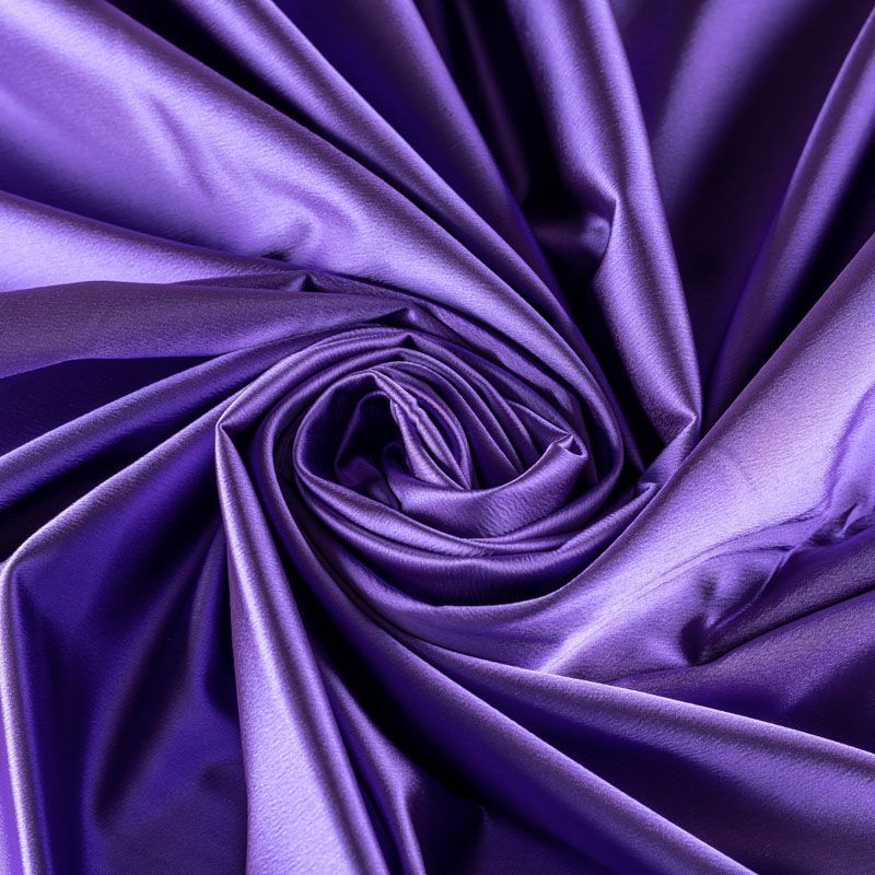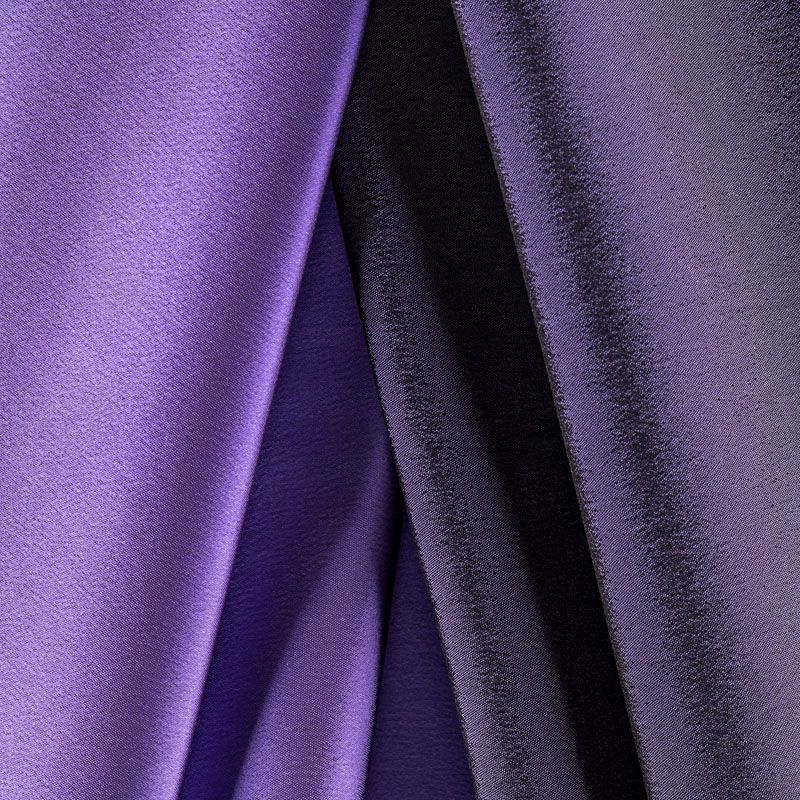 Итальянский костюмно-плательный атлас ватуссо благородного лилового оттенка. Ткань плотная, но пластичная, хорошо держит форму и отлично тянется, собирается в красивые складки и драпировки. Почти не мнется, очень удобный и практичный. Блеск умеренный, смотрится дорого, благородно. Подойдет для пошива прямых силуэтов-футляров, приталенных платьев с пышной юбкой и крупными драпировками, изделий с заложенными складками, нарядных изделий, вечерних костюмов, летнего пальто, юбки, для изготовления корсетов.