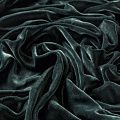 Хлопковый бархат припыленного темно-зеленого оттенка. Ткань плотная, мягкая с коротким ворсом, отлично держит форму. Имеет благородный матовый оттенок. Подойдет для пошива нарядного костюма, жакета, юбки, жилета, шорт, комбинезонов, брюк, платья-футляр, легкого пальто или бомбера.