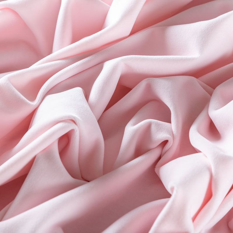Хлопковый итальянский бархат нежно-розового оттенка. Ткань плотная, мягкая с коротким ворсом. Не грубая, хорошо драпируется. Имеет благородный матовый оттенок. Подойдет для пошива нарядного костюма, жакета, юбки, жилета, шорт, комбинезонов, брюк, платья-футляр, легкого пальто или бомбера.