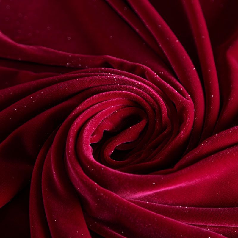 Нарядная ткань с ультракоротким ворсом декорирована искрящимися точками по всей поверхности, очень приятна на ощупь, не мнется, мягкая, нежная, хорошо тянется и драпируется. Цвет играет отблесками и полутонами. Бархат идеально подходит для пошива вечерних платьев, юбок, костюмов, а также стильных аксессуаров.