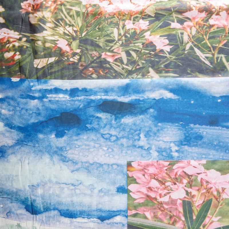 Итальянский хлопковый батист с фотопринтом в голубых и зеленых оттенках. Ткань очень легкая, прозрачная, приятная на ощупь, нежная, пластичная, хорошо и мягко драпируется, летящая. Батист подойдёт для модных блуз с объёмными рукавами, летних платьев и сарафанов с длинной летящей юбкой, прозрачных рубашек, декорированных объёмными бантами, туник и топов.