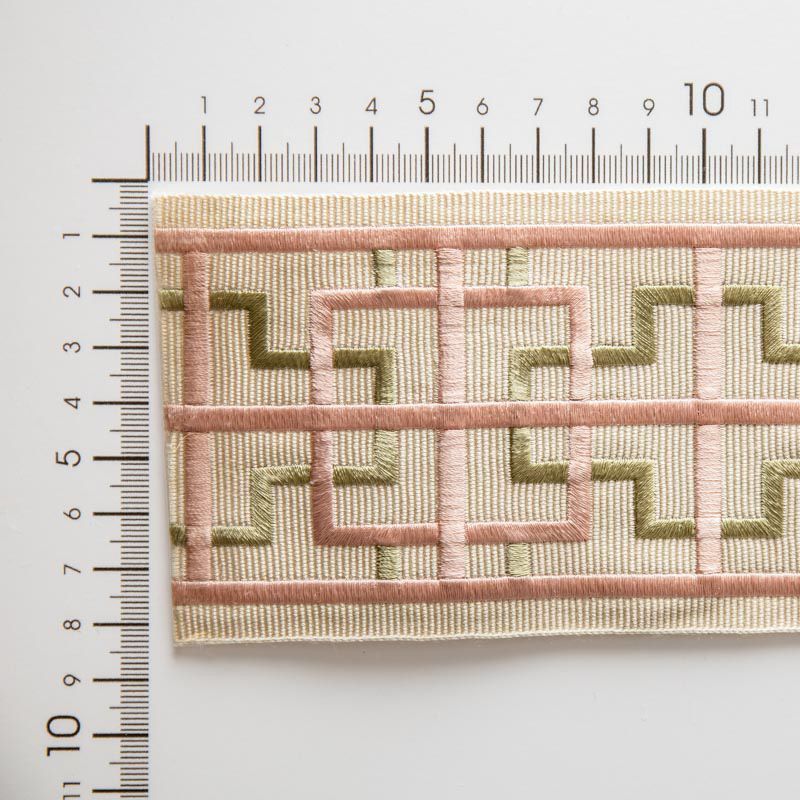 Бордюр жаккардовый 7 см 0000-357-104-012 молочным с зелено-розовым