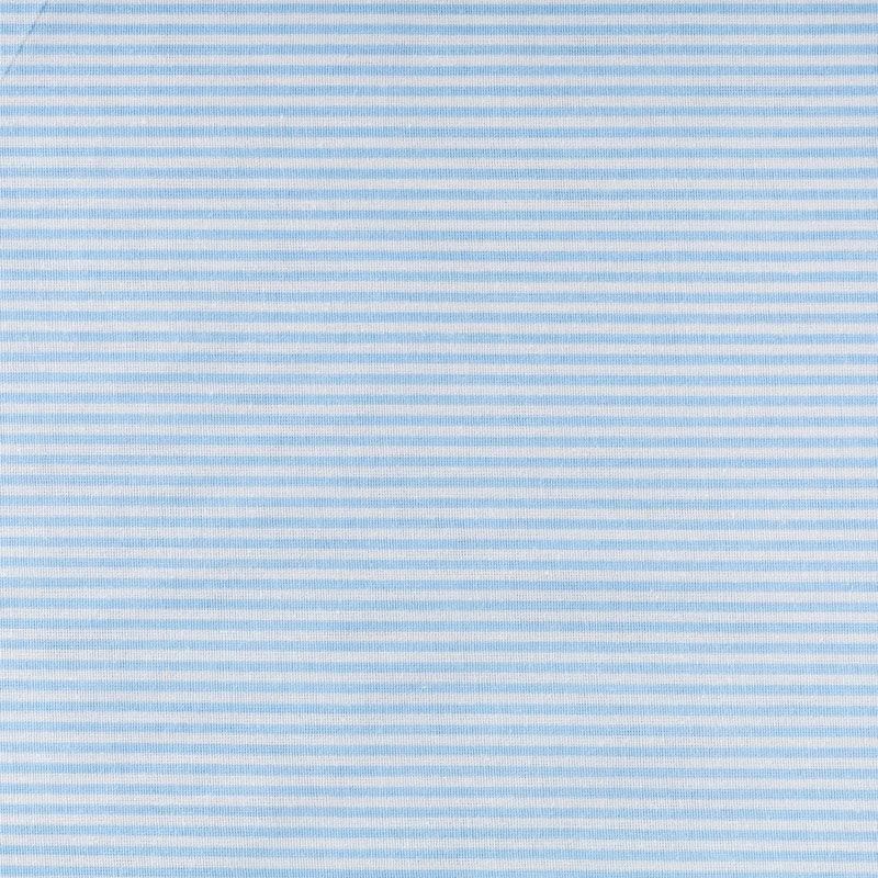 Плотная натуральная ткань с особым принципом переплетения нитей: крест-накрест. Имеет гладкую матовую поверхность чуть шероховатую на ощупь, не тянется, немного просвечивает. Прочная и стойкая к износу, надолго сохраняет яркость красок, не растягивается при стирке, практически не мнется. Рисунок в узкую голубую полоску на белом фоне прекрасно подойдет для пошива постельного белья, изготовления пеленок, бортиков для кроватки, домашней одежды и других предметов интерьера.