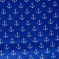 Плотная натуральная ткань с особым принципом переплетения нитей: крест-накрест. Имеет гладкую матовую поверхность, немного шероховатая на ощупь, не тянется, немного просвечивает. Прочная и стойкая к износу, надолго сохраняет яркость красок, практически не мнется. Морской летний принт в виде белых якорей на насыщенном фиолетово-синем фоне прекрасно подойдет для пошива постельного белья, изготовления пеленок, бортиков для кроватки, домашней одежды и других предметов интерьера.