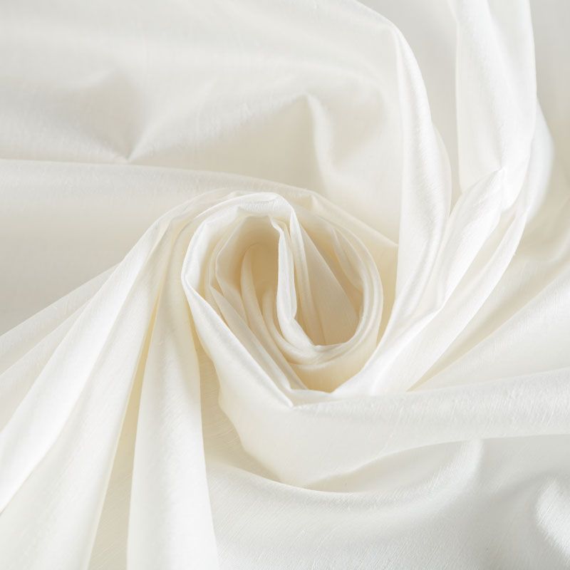 Фактурный натуральный дикий шелк из волокна высшего сорта является самым натуральным из всех видов шелка. Ткань приятна на ощупь, комфортна при носке, гигиенична и долговечна. Дикий шелк прекрасно держит форму, драпируется и подходит как для пошива блузы, топа, жакетов, платьев, юбок, плащей и тренчей, так и для дизайна интерьеров пошива штор, покрывал, подушек и обивки мебели.