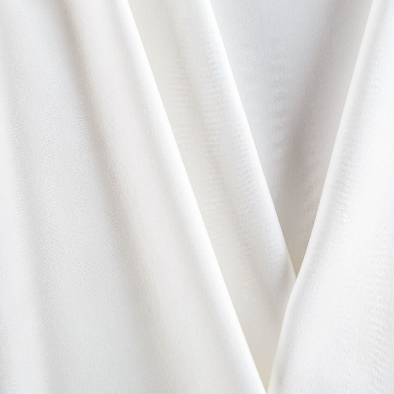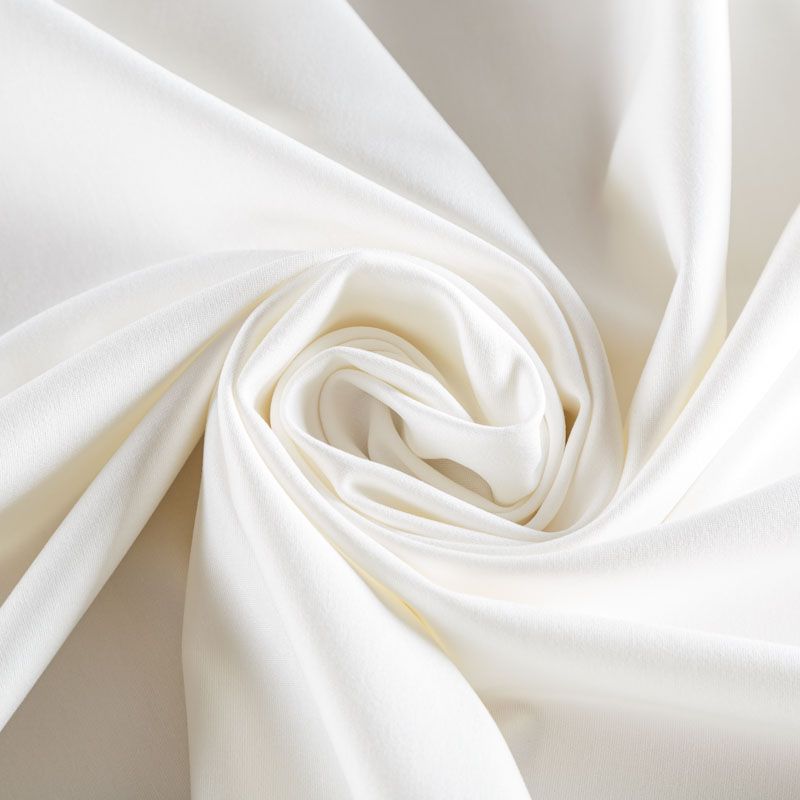 Трикотажное полотно средней плотности. Обе стороны ткани ровные, гладкие. Материал эластичный, имеет растяжимость по всем сторонам, держит форму, уютный, приятный к телу и удобный в носке. Применяется в пошиве платьев, юбок, костюмов, жакетов.