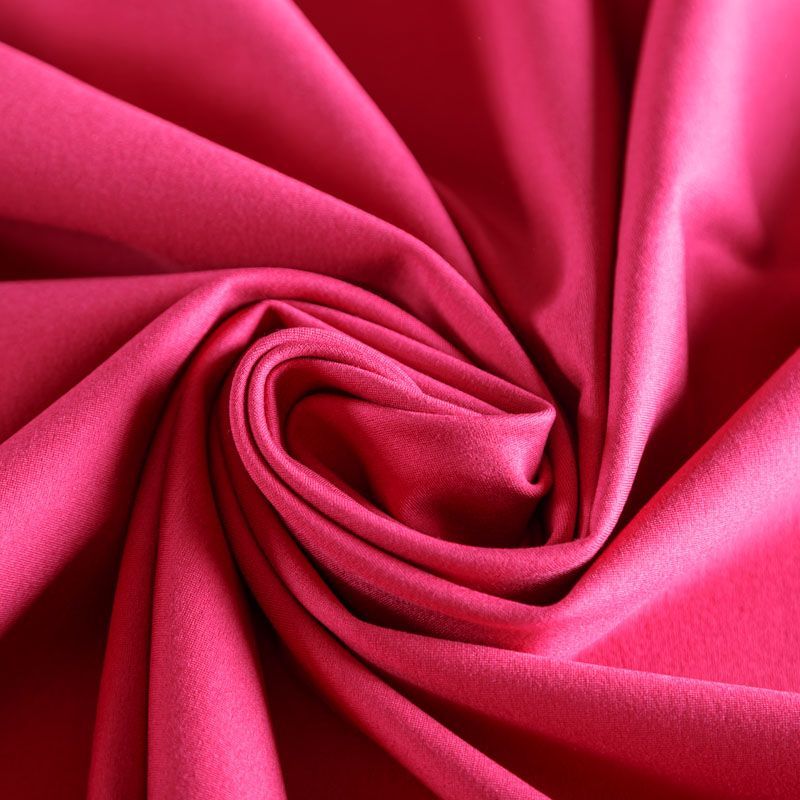 Трикотажное полотно средней плотности. Обе стороны ткани ровные, гладкие. Материал эластичный, упругий, имеет растяжимость по всем сторонам, хорошо держит форму, уютный, приятный к телу и удобный в носке. Подойдет для пошива платьев, юбок, костюмов, жакетов, брюк.