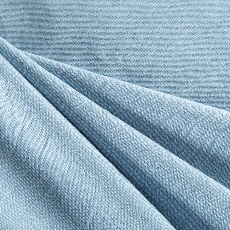 Плотная джинсовая ткань, деним соткан методом джинсового плетения, при котором окрашены только нити основы, а волокна утка - всегда белые. Так получается оригинальный разбеленный оттенок денима, который является особенностью джинсовых материалов. Материал имеет высокую плотность, при небольшой толщине, мягкий и приятный на ощупь, эластичный, хорошо держит форму, обладает устойчивостью к истиранию и механическим повреждениям. Подойдет для пошива рубашек, сарафанов, платьев, юбок, шорт, брюк-джоггеров, лёгких курток и жакетов.