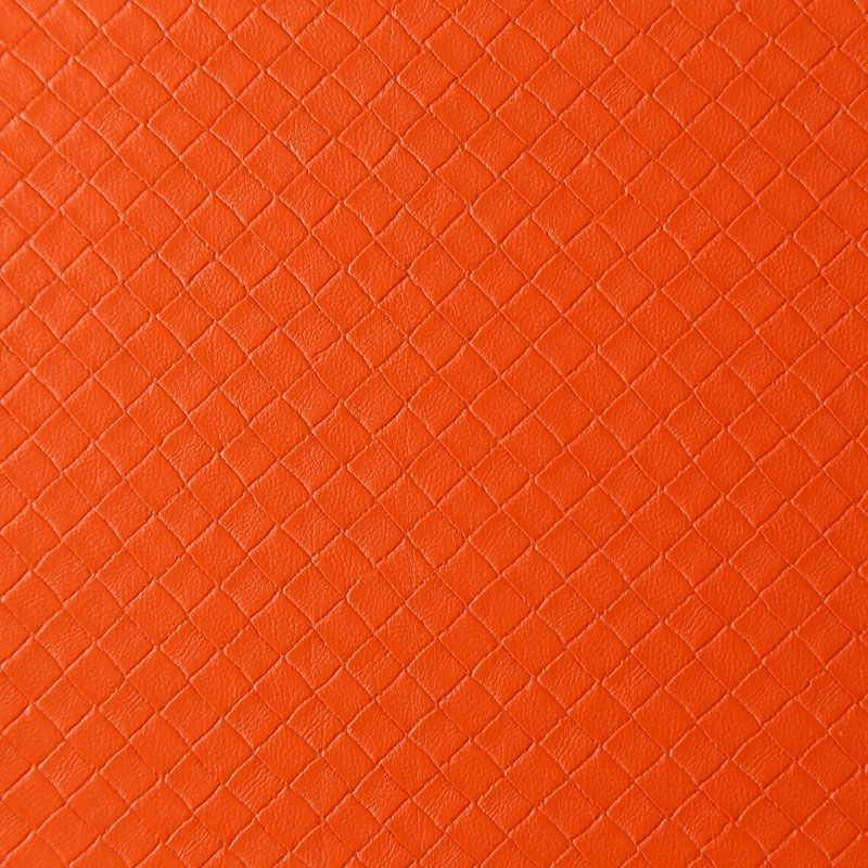 Экокожа в оранжевом оттенке с объемной фактурой, имитирующей плетенку. Очень приятная на ощупь, пластичная. Подойдет для пошива платья, брюк, шорт, юбки, куртки, плаща, пальто-рубашки, а также сумки, рюкзака и других аксессуаров.