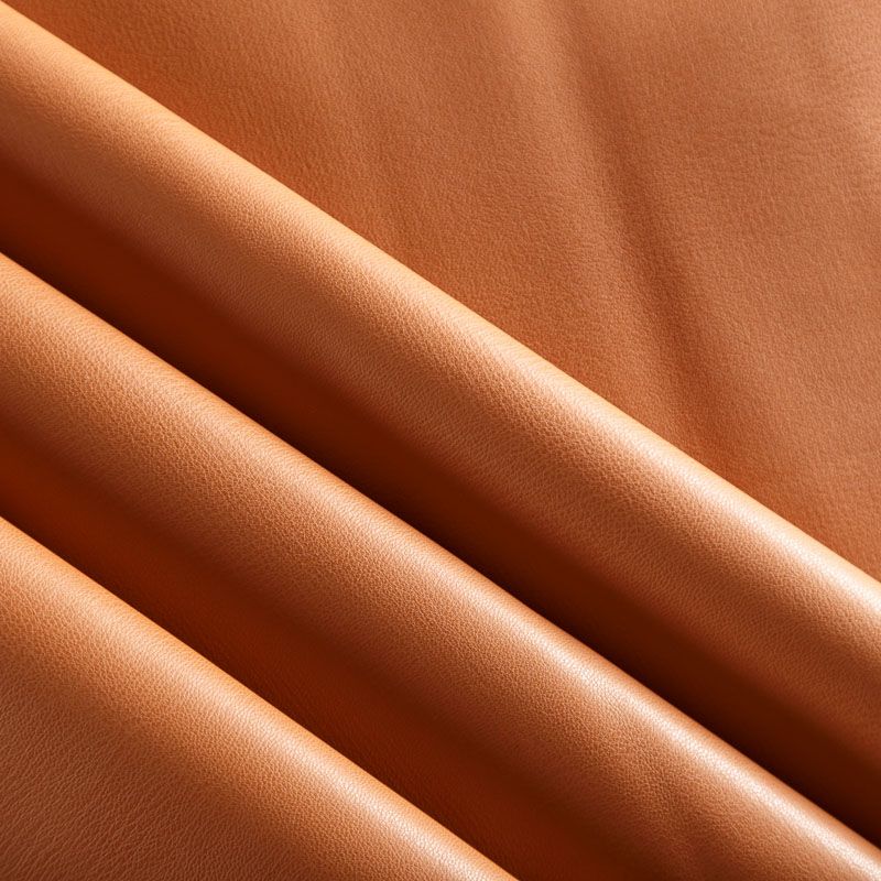 Искусственный материал, имитирующий натуральную кожу коричневого оттенка. Поверхность ткани матовая, гладкая, изнаночная сторона - имитация замши. Приятная на ощупь, тянется, не просвечивает, пластичная. Подойдет для пошива куртки, костюма, платья, юбки, брюк, шорт, комбинезона, сумки, рюкзака.