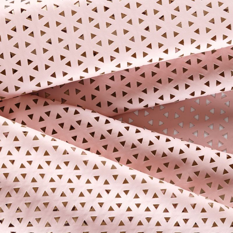 Искусственный материал, имитирующий натуральную кожу, на трикотажной основе. Поверхность матовая, с геометрической лазерной перфорацией. Экокожа тоньше натуральной, не мнется, пластична, тянется, хорошо облегает фигуру. Изнаночная сторона - трикотаж телесного оттенка. Подойдет для пошива куртки, костюма, платья, юбки, брюк, шорт, комбинезона, сумки, рюкзака.