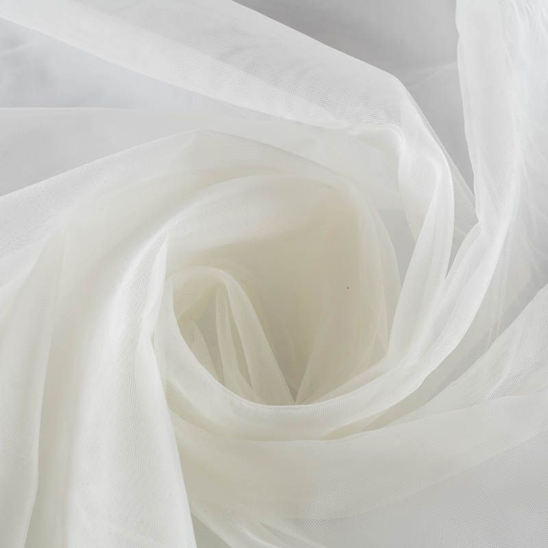 Итальянский еврофатин - мягкий и матовый. Неплохо драпируется в слегка держащие форму складки, имеет мелкое сетчатое плетение, прияный на ощупь, растягивается в ширину. Подойдет для пошива платья, юбки-пачки, фаты и других коктейльных и вечерних нарядов.