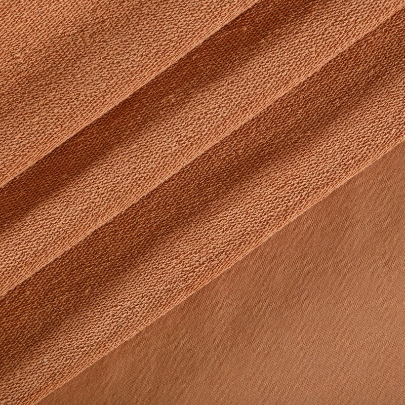 Трикотажное полотно средней плотности и пластичности. Лицевая сторона гладкая, изнанка с петельчатой структурой. На ощупь материал очень мягкий, приятный к телу. Прекрасный вариант для пошива спортивных костюмов, свитшотов, кардигана, платья, топа или жакета.