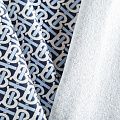Итальянский брендовый футер с искусным лого-принтом на темно-синем фоне. Материал гладкий с лицевой стороны, с изнаночной стороны имеет нежную мелкую петельчатую текстуру. Ткань мягкая и комфортная, достаточно эластичная, пластичная. Хорошо садится по фигуре. Практически не мнется. После растягивания быстро возвращается к прежней форме. Подойдет для пошива толстовки, спортивного костюма, свитшота, платья в спортивном стиле.