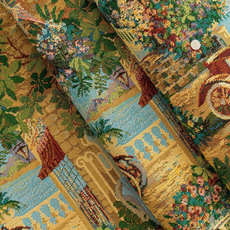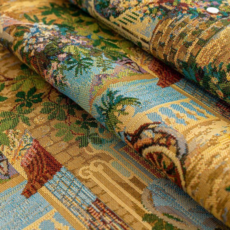 Гобелен представляет собой ткань, выполненную  перекрестным плетением нитей с одномоментным созданием сюжетной или орнаментальной композиции. Это плотный материал высокую прочность и износостойкость. Гобелен используют для пошива плотных светонепроницаемых штор, декоративного домашнего текстиля и аксессуаров, в мебельном производстве для обивки мебели. Так же применяется в рукоделии: модные кошельки, сумочки, пояса и другие аксессуары и при изготовлении дизайнерской одежды.