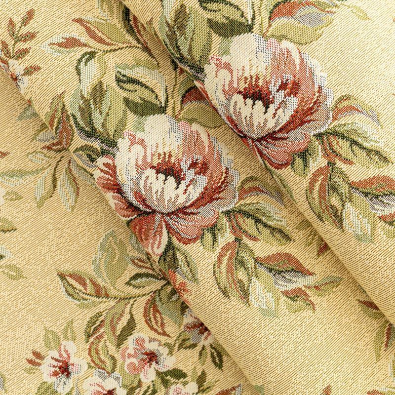 Гобелен представляет собой ткань, выполненную  перекрестным плетением нитей с одномоментным созданием сюжетной или орнаментальной композиции. Это плотный материал высокую прочность и износостойкость. Гобелен используют для пошива плотных светонепроницаемых штор, декоративного домашнего текстиля и аксессуаров, в мебельном производстве для обивки мебели. Так же применяется в рукоделии: модные кошельки, сумочки, пояса и другие аксессуары и при изготовлении дизайнерской одежды. Цветочный рисунок - настоящее украшение, придает изделию естественность, чувственность и налет романтичности.
