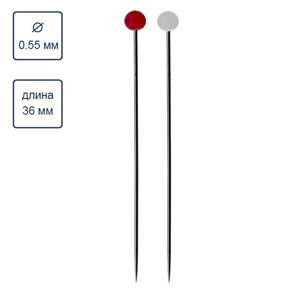 Иглы для закалывания со стеклянными термостойчивыми цветными головками. Предназначены для точного соединения деталей, подойдут для закалывания при шитье и крое. По булавкам можно проглаживать утюгом, поэтому они удобны для наметки, квилтинга и пэчворка. Сделаны из высококачественной стали, прочные, поверхность иглы покрыта специальным покрытием от защищающий коррозии. Острие и тонкие кончики булавки исключают любые повреждения ткани. Иглы упакованы в пластиковую прозрачную коробочку, удобна для хранения. Длина булавки с головкой 36 мм. Диаметр иглы 0.55 мм.