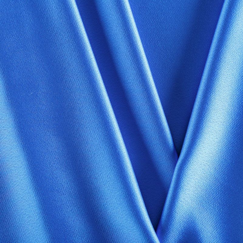 Итальянская ткань кади насыщенного синего оттенка. Кади — это креп-атлас с красивым глянцевым блеском. Ткань с плотной фактурой, роскошно ниспадает, очень хорошо тянется, изумительно садится по фигуре и шикарно смотрится в изделии. Она хорошо драпируется, эффектно облегает. Подходит для пошива удлиненных платьев с драпировками, платья-футляра, брюк палаццо, юбки-карандаш, жакета, туники, кроп-топа, а также для вечерних, свадебных и выпускных платьев и костюмов.