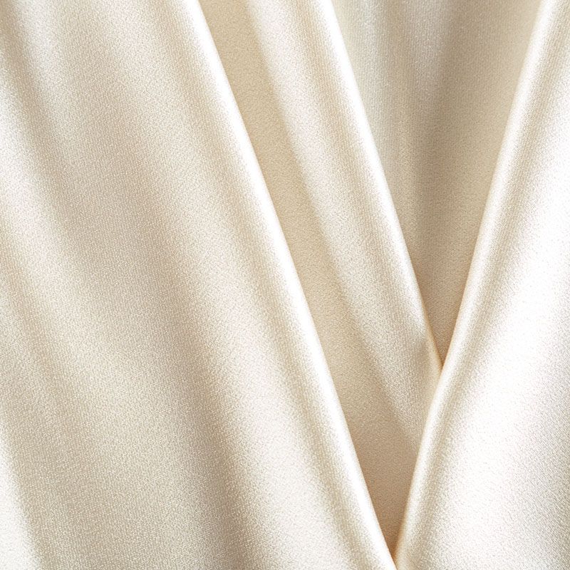 Итальянская ткань кади жемчужно-золотистого оттенка. Кади — это креп-атлас с красивым глянцевым блеском. Ткань с плотной фактурой, роскошно ниспадает, очень хорошо тянется, изумительно садится по фигуре и шикарно смотрится в изделии. Она хорошо драпируется, эффектно облегает. Подходит для пошива удлиненных платьев с драпировками, платья-футляра, брюк палаццо, юбки-карандаш, жакета, туники, кроп-топа, а также для вечерних, свадебных и выпускных платьев и костюмов.