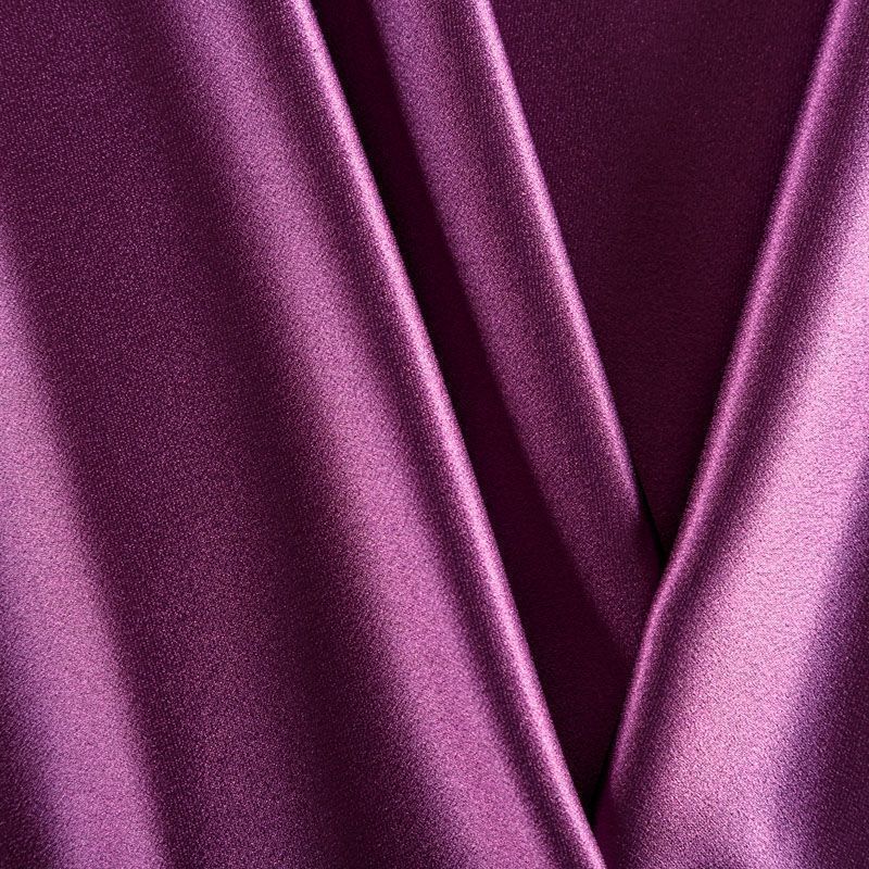 Итальянская ткань кади сливового оттенка. Кади — это креп-атлас с красивым глянцевым блеском. Ткань с плотной фактурой, роскошно ниспадает, очень хорошо тянется, изумительно садится по фигуре и шикарно смотрится в изделии. Она хорошо драпируется, эффектно облегает. Подходит для пошива удлиненных платьев с драпировками, платья-футляра, брюк палаццо, юбки-карандаш, жакета, туники, кроп-топа, а также для вечерних, свадебных и выпускных платьев и костюмов.