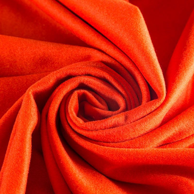 Итальянский пальтовый кашемир в ярком оттенке. Ткань мягкая, пластичная, приятная на ощупь, гибкая, средней толщины, при этом высокой плотности. Поверхность имеет короткий ворс. Подойдет для пошива пальто, куртки, жакета, парки, кейпа, жакета или пончо.