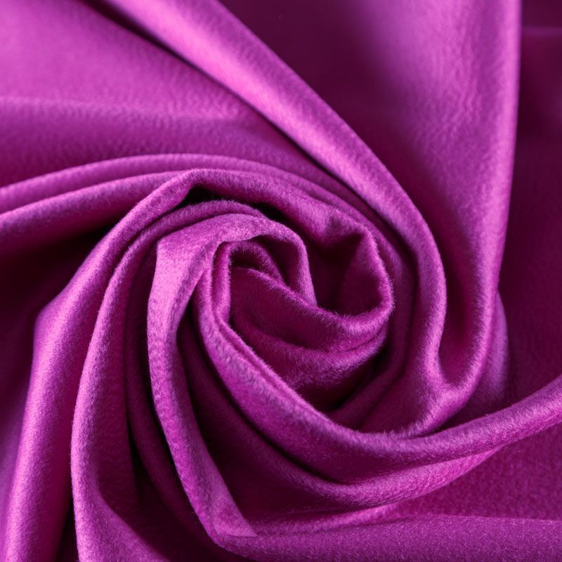 Итальянский пальтовый кашемир ярко-розового оттенка. Ткань мягкая, пластичная, приятная на ощупь, гибкая, средней толщины, при этом высокой плотности. Поверхность имеет короткий ворс с характерной волной. Подойдет для пошива пальто, куртки, жакета, парки, кейпа, жакета или пончо.