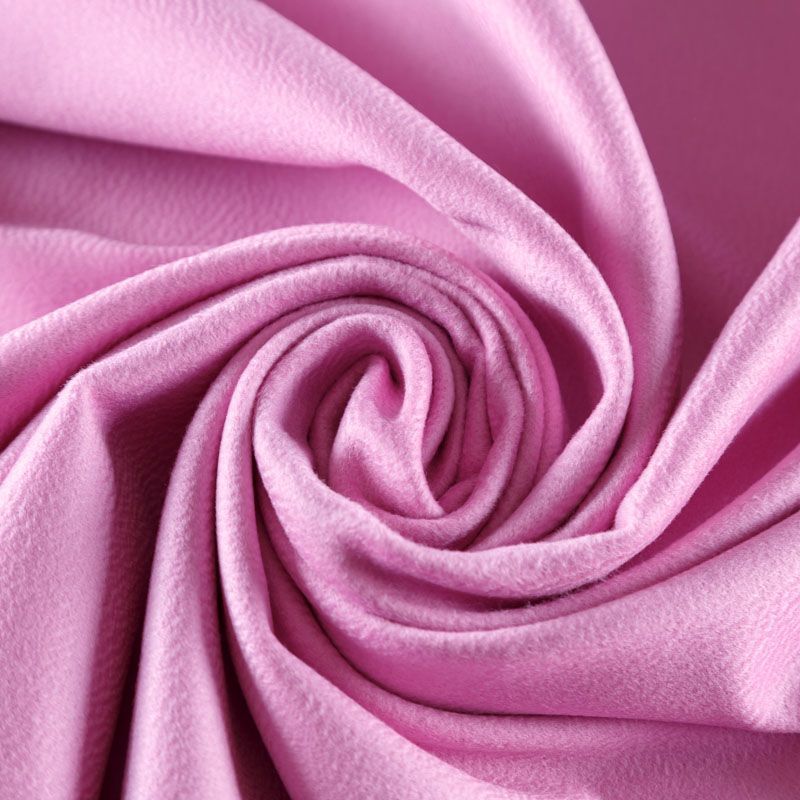 Итальянский пальтовый кашемир розового оттенка. Ткань мягкая, пластичная, приятная на ощупь, гибкая, средней толщины, при этом высокой плотности. Поверхность имеет короткий ворс с характерной волной. Подойдет для пошива пальто, куртки, жакета, парки, кейпа, жакета или пончо.