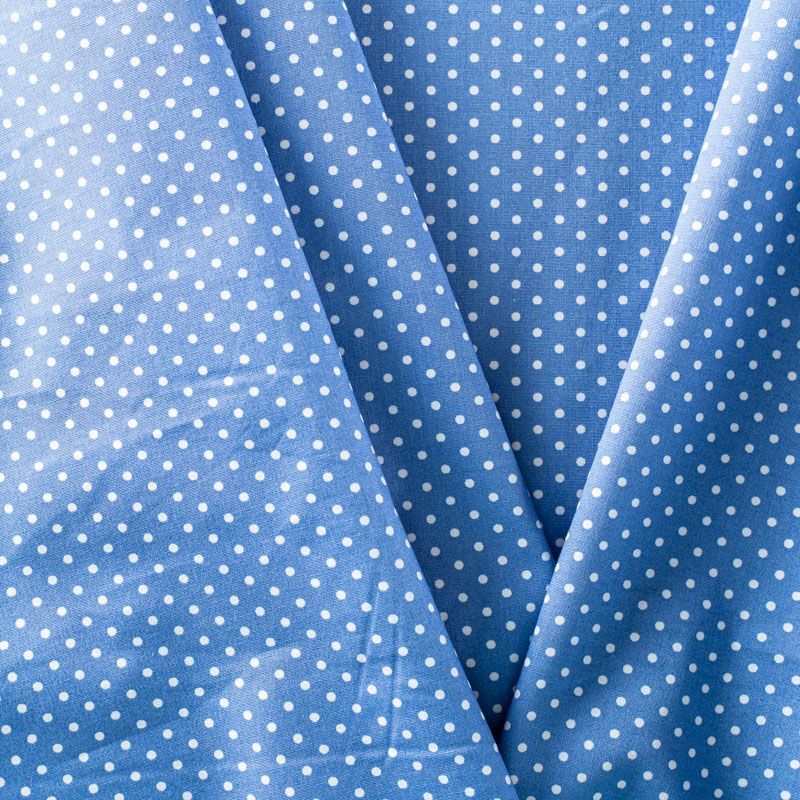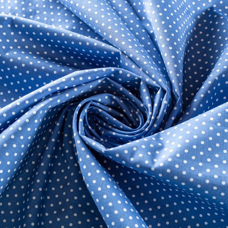 Плательно-блузочная ткань из натурального хлопка в мелкий горошек. Ткань легкая, тонкая, хорошо "дышит", мягкая, не прозрачная, немного тянется за счет эластана в составе. Подойдет для пошива летнего платья, летящей юбки, блузы, сарафана, комбинезона или рубашки.