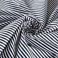 Плательно-блузочная ткань из натурального хлопка в вертикальную черную полоску. Ткань легкая, тонкая, хорошо "дышит", мягкая, не прозрачная. Подойдет для пошива летнего платья, летящей юбки, блузы, сарафана, комбинезона или рубашки.