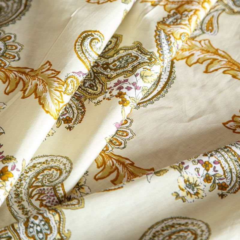 Плательно-рубашечная ткань из натурального хлопка с узором пейсли. Ткань легкая, тонкая, хорошо "дышит", слегка держит форму, не сухая, не прозрачная. Подойдет для пошива летнего платья, летящей юбки, блузы, сарафана, комбинезона или рубашки, а также для домашней одежды.