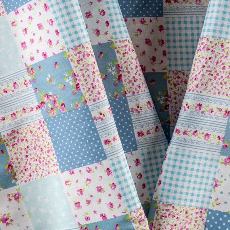Ткань из натурального хлопка с рисунком в виде сшитых между собой разных лоскутков (печворк). Размер клетки 5*5 см. Ткань легкая, хорошо "дышит", мягкая, слегка прозрачная. Подойдет для пошива белья, рукоделия, печворка, изготовления предметов интерьера.