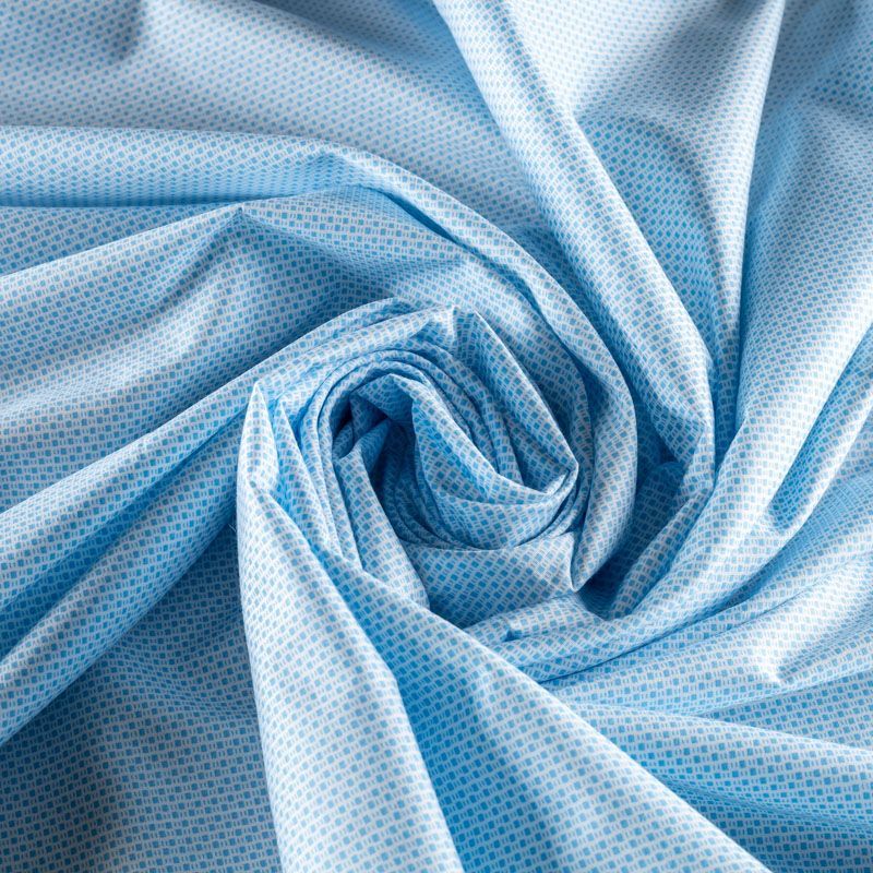 На белом фоне мелкий геометрический рисунок голубого цвета.
