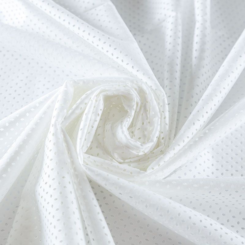 Итальянский однотонный гладкокрашенный плательно-рубашечный хлопок декорирован лазерной ажурной перфорацией. Ткань лёгкая, прозрачная за счет структуры, поверхность матовая, гладкая, приятная к телу, хорошо драпируется. Прекрасно подойдет для пошива блузы, платья-рубашки, летнего сарафана, туники, топа, юбки, шорт на подкладе.