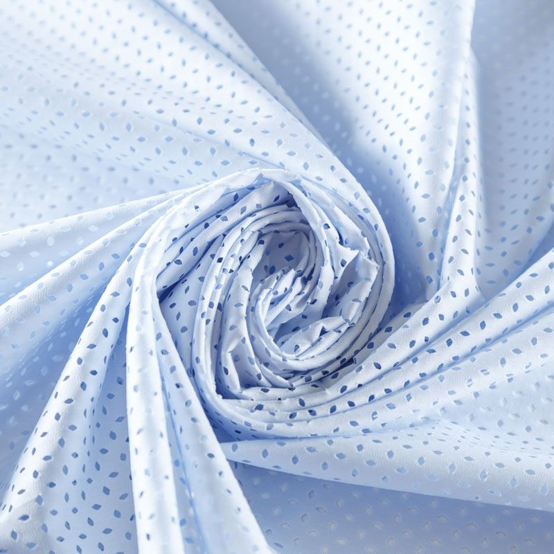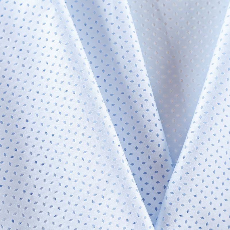 Итальянский однотонный гладкокрашенный плательно-рубашечный хлопок декорирован лазерной ажурной перфорацией. Ткань лёгкая, прозрачная за счет структуры, поверхность матовая, гладкая, приятная к телу, хорошо драпируется. Прекрасно подойдет для пошива блузы, платья-рубашки, летнего сарафана, туники, топа, юбки, шорт на подкладе.