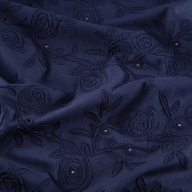 Хлопок с вышивкой 067-20043 темно-синий в Северодвинске