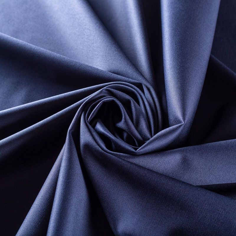 Итальянский коттон темно-синего оттенка, эластичный, держит форму, смотрится красиво. Материал имеет высокую плотность, при небольшой толщине, мягкий и приятный на ощупь, обладает устойчивостью к истиранию и механическим повреждениям. Подойдет для пошива рубашек, сарафанов, платьев, юбок, шорт, брюк-джоггеров, лёгких курток и жакетов.