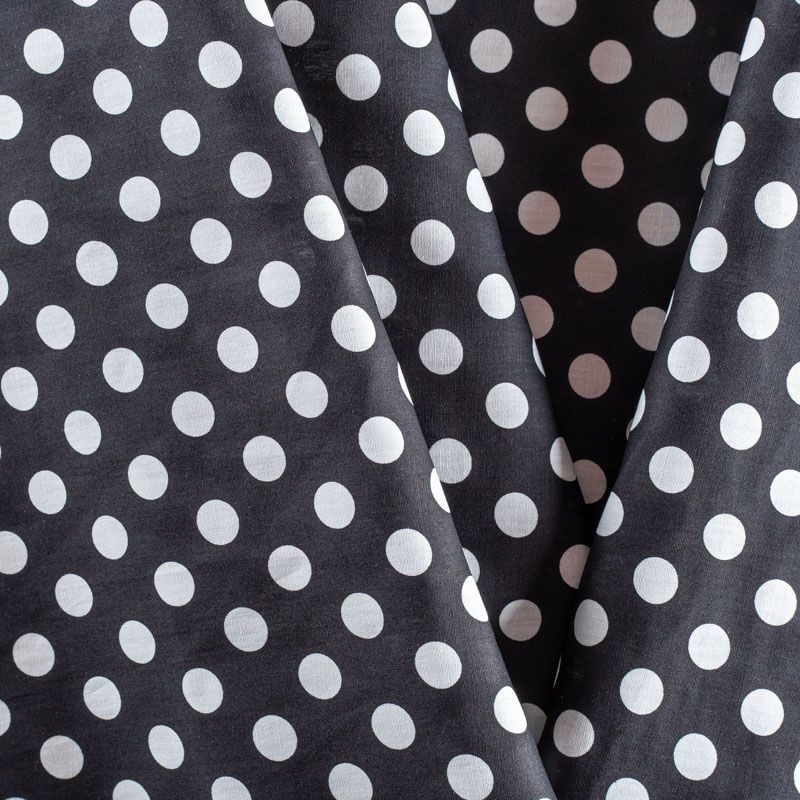 Костюмно-плательный коттон средней плотности в крупный горох, мягкий, приятный на ощупь, эластичный, немного держит форму, смотрится красиво. Поверхность ткани матовая, гладкая, полотняного переплетения. Подойдет для пошива костюма, легкого жакета, юбки, платья и других изделий на теплый и прохладный сезоны.