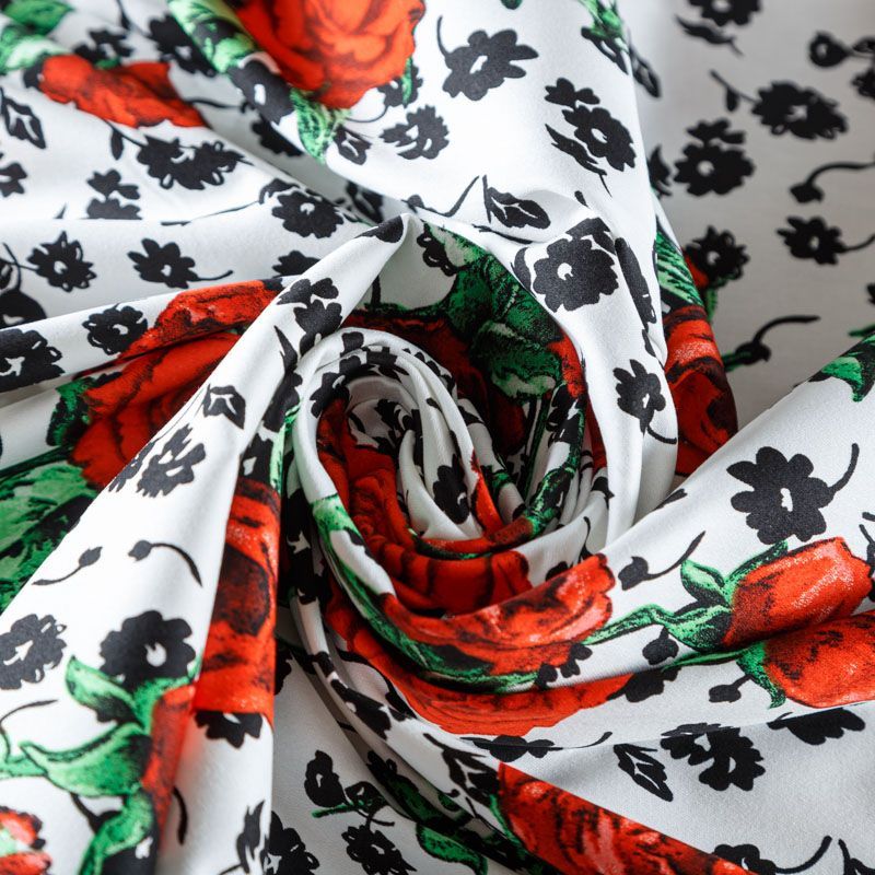Ткань средней плотности, мягкая, приятная на ощупь, эластичная, держит форму, смотрится красиво, женственно. Подойдет для пошива костюма жакета, юбки, платья и других изделий, на теплый и прохладный сезоны.