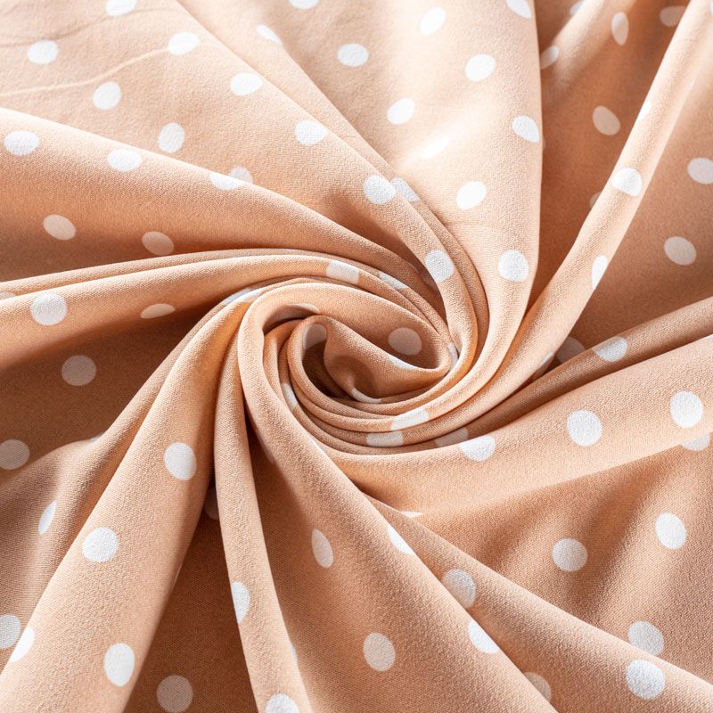 Плательный креп с принтом в горох. Ткань средней плотности, не толстая, пластичная, поверхность полотна матовая, с характерной мелкозернистой фактурой, прочная, хорошо драпирующаяся. Превосходно подойдет для пошива стильного костюма, юбки, платья, комбинезона, топа, брюк.