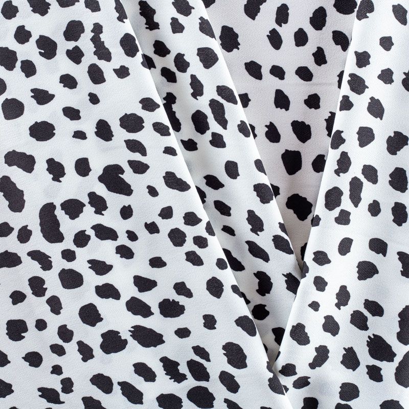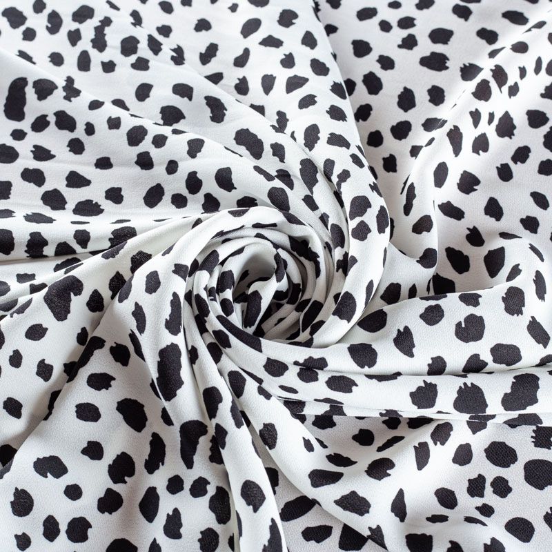 Плательный креп с абстрактным принтом. Ткань средней плотности, не толстая, пластичная, поверхность полотна матовая, с характерной мелкозернистой фактурой, прочная, практически не мнется, хорошо драпируется. Превосходно подойдет для пошива стильного костюма, юбки, платья, комбинезона, топа, брюк.