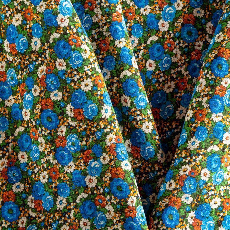 Итальянский креп плательной плотности с мелкоцветным ярким принтом. Поверхность матовая и фактурная, ткань малосминаемая, тянется за счет эластана в составе, красиво драпируется, струится и дает объемную складку, не просвечивает.Идеально подойдет для шикарного платья, блузы, юбки, комбинезона, брюк свободного кроя.