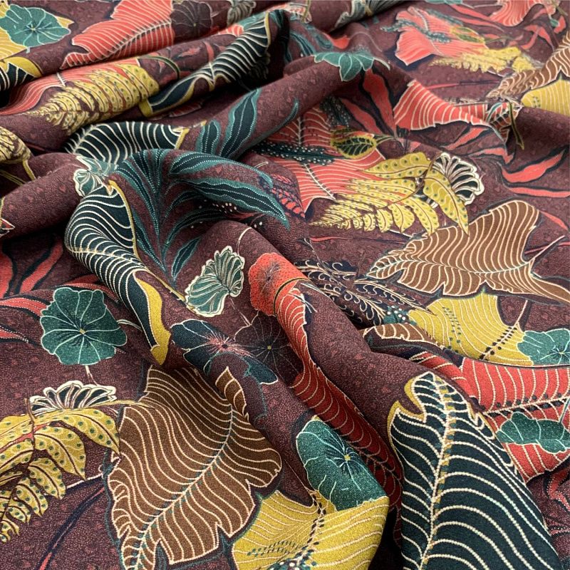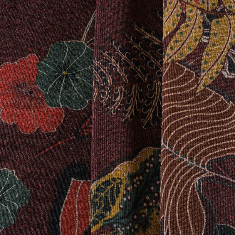 Креп 026-11729 бордово-коричневый принтованный
