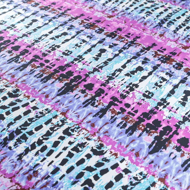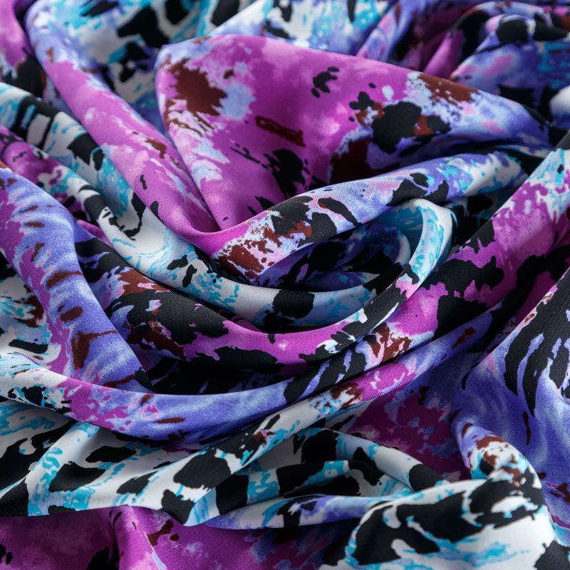 Плательный креп с абстрактным принтом. Ткань средней плотности, не толстая, пластичная, поверхность полотна матовая, с характерной мелкозернистой фактурой, прочная, практически не мнется, хорошо драпируется. Превосходно подойдет для пошива стильного костюма, юбки, платья, комбинезона, топа, брюк.