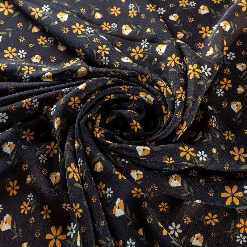 Креп-шифон 027-01273 черный принтованный в Северодвинске