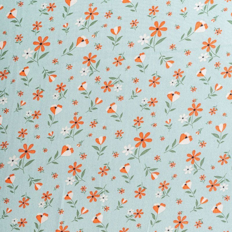 Креп-шифон 027-01274 бирюзовый принтованный