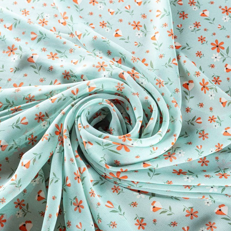 Креп-шифон 027-01274 бирюзовый принтованный в Северодвинске