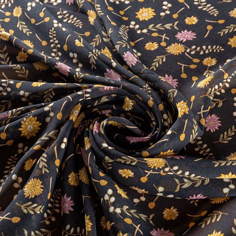 Креп-шифон 027-01281 черный принтованный в Северодвинске