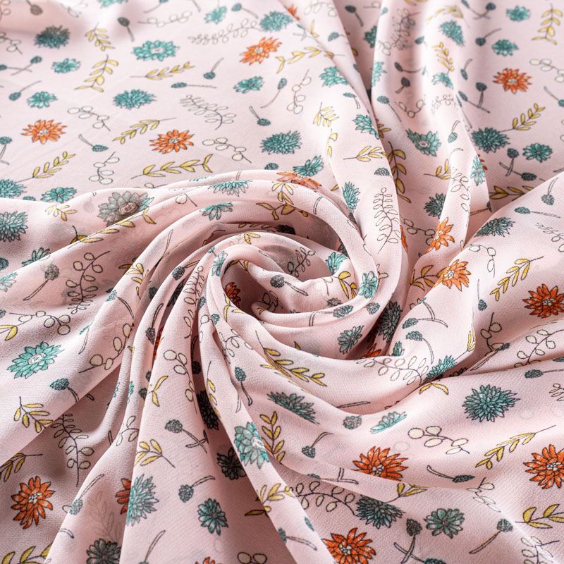 Креп-шифон 027-01284 пудрово-розовый принтованный в Северодвинске
